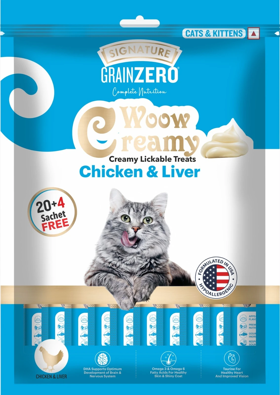 Signature Grain Zero Creamy Lickable Cat Treats (15g x 24 Pieces | 360g) 😻 are premium, grain-free treats specially crafted for cats & kittens. These smooth and creamy treats are not only delicious but also packed with essential nutrients to support your cat’s overall health.