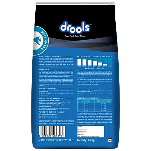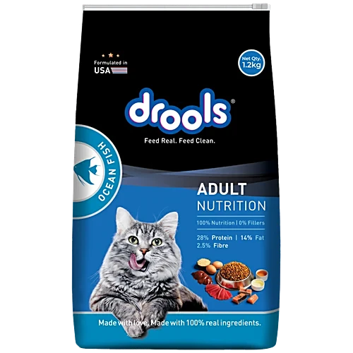 Give your cat a nutritious and tasty meal with Drools Ocean Fish Adult Dry Cat Food. Made with real ocean fish, this formula provides essential nutrients to keep your cat healthy, active, and energetic.